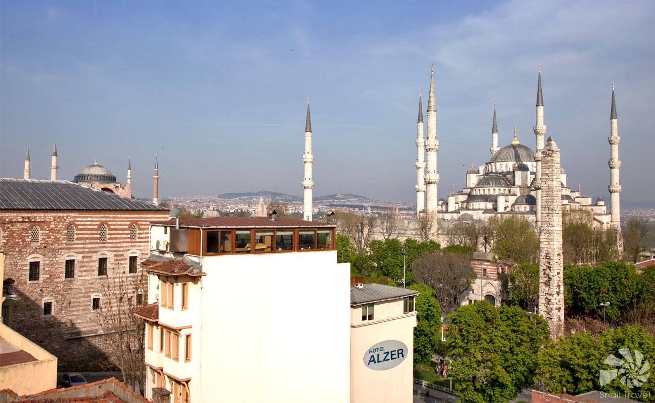 Hotel Alzer má výjimečnou polohu přímo v historickém centru Istanbulu vedle Modré mešity a nabízí překrásné výhledy z terasy na okolní věžičky Sulthanatu.
