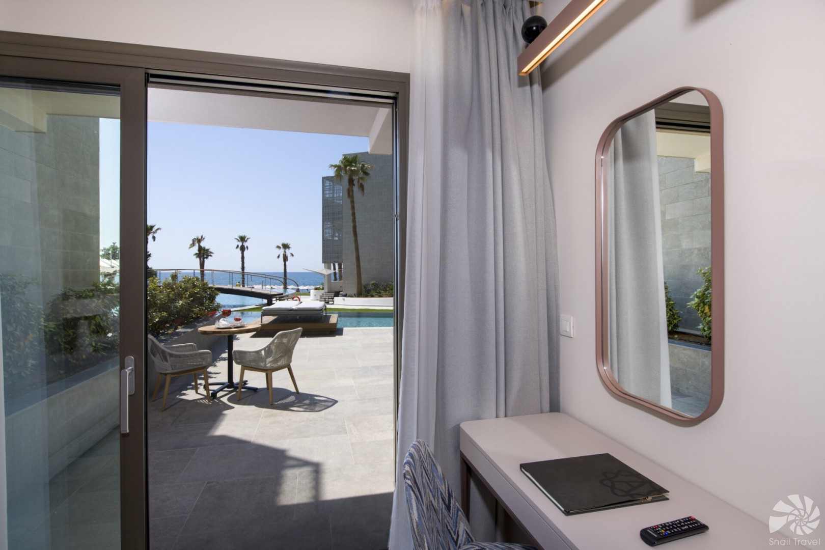 Resort nabízí spojení elegantního designu a minimalistického půvabu v celkem 172 pokojích: 77 dvoulůžkových pokojů Superior 9 dvoulůžkových pokojů Superior s výhledem na moře a venkovním jacuzzi 16 dvoulůžkových pokojů Superior se sdíleným bazénem 43 junior suite 17 luxusních junior suite se sdíleným bazénem 8 superior suit vlastním bazénem 2 luxusních suite s venkovním jacuzzi