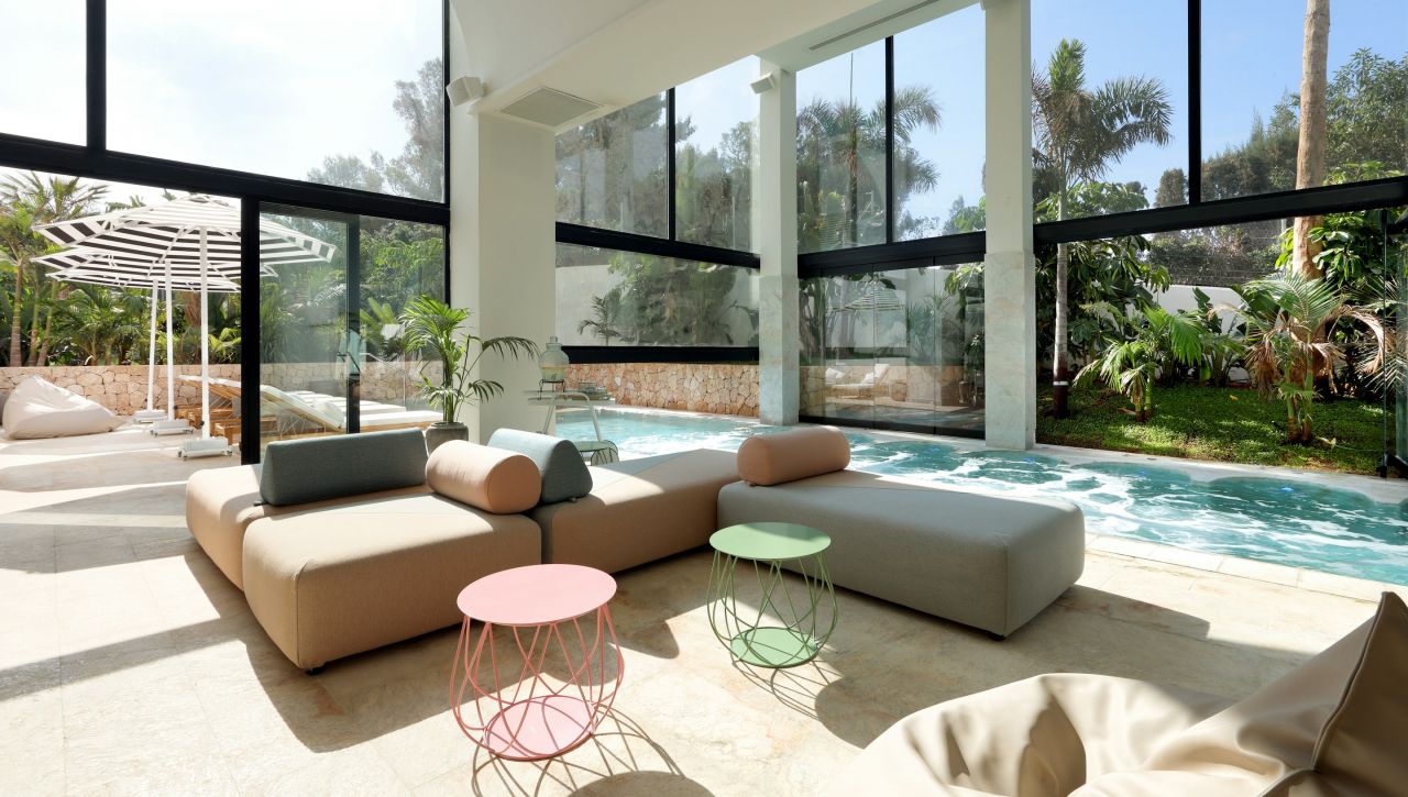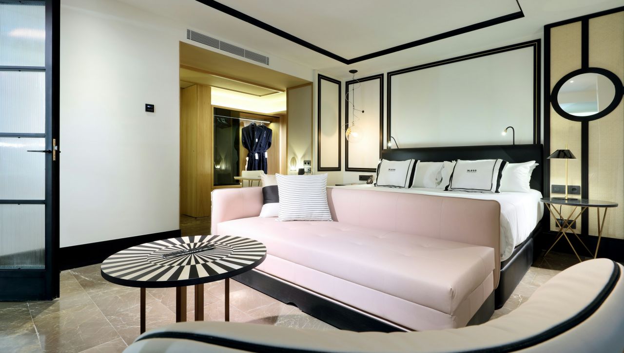 Bless Hotel Ibiza je moderní lifestyle hotel, který klade důraz na design, estetiku a detaily. Interiéry kombinují středomořský styl s prvky současného luxusu a inspirací haute couture. Celý hotel působí stylově, elegantně a zároveň uvolněně – typická „chic Ibiza“ atmosféra.