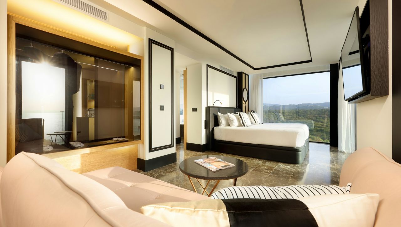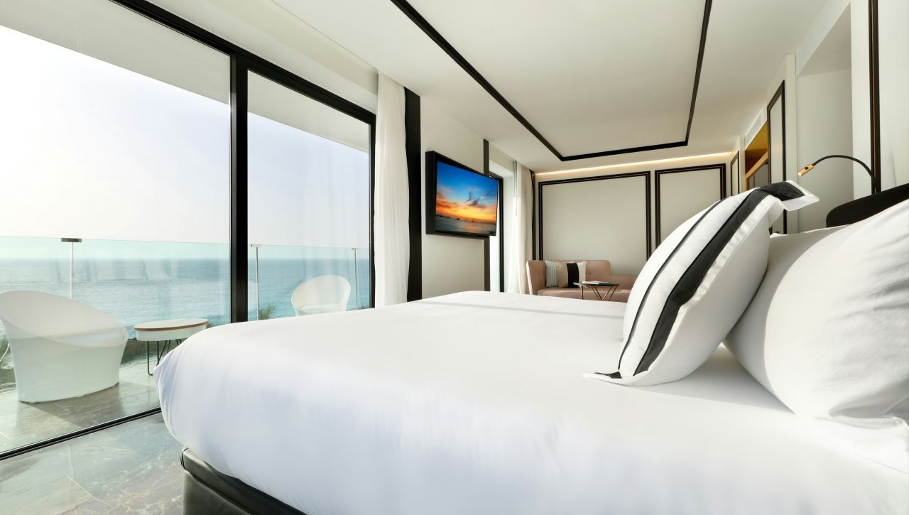Ubytování zahrnuje stylové pokoje a luxusní suity, které jsou navrženy s důrazem na komfort a design. Světlé interiéry, kvalitní materiály a balkon nebo terasa vytvářejí ideální zázemí pro pobyt.