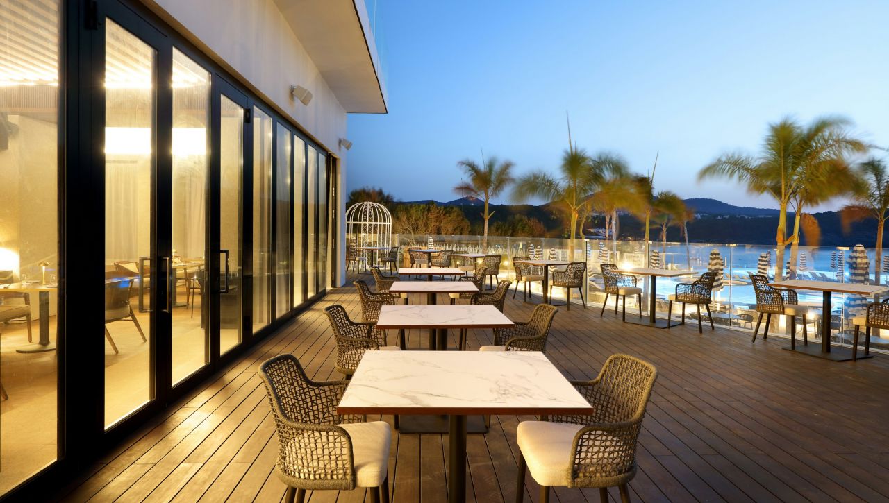 Hotel nabízí ikonický infinity bazén s výhledem na moře a stylový rooftop, který patří k nejatraktivnějším místům resortu. Je ideální pro relaxaci během dne i večerní atmosféru s výhledem na západ slunce.