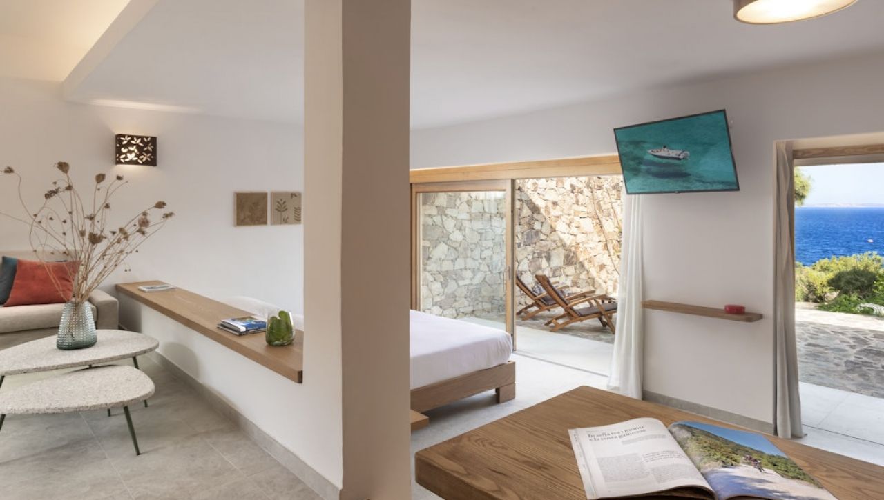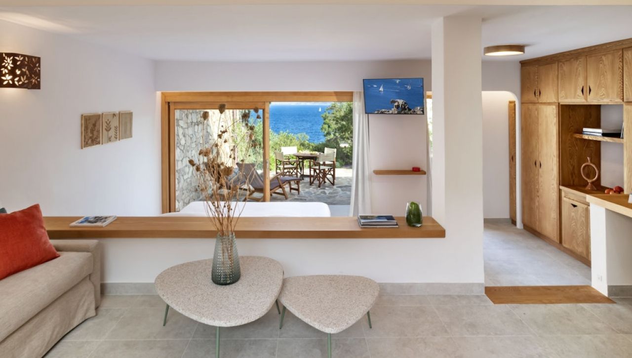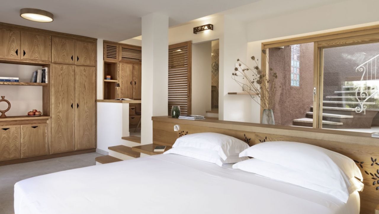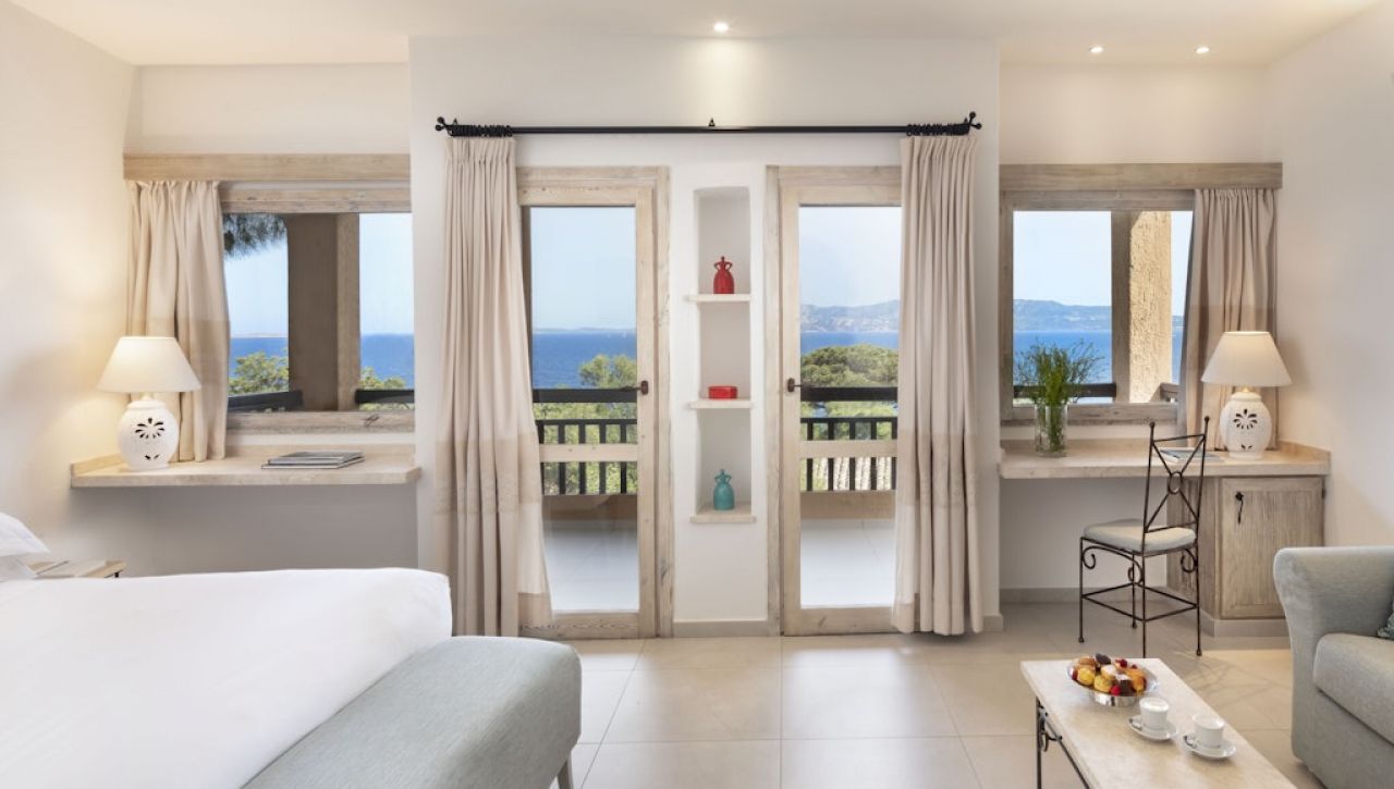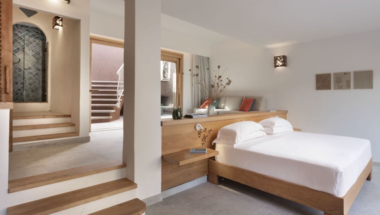 Pokoje a suity jsou zařízeny v tradičním středomořském stylu s důrazem na přírodní materiály, světlo a pohodlí. Interiéry působí útulně a elegantně zároveň, často doplněné terasou nebo balkonem s výhledem na moře nebo okolní zeleň.