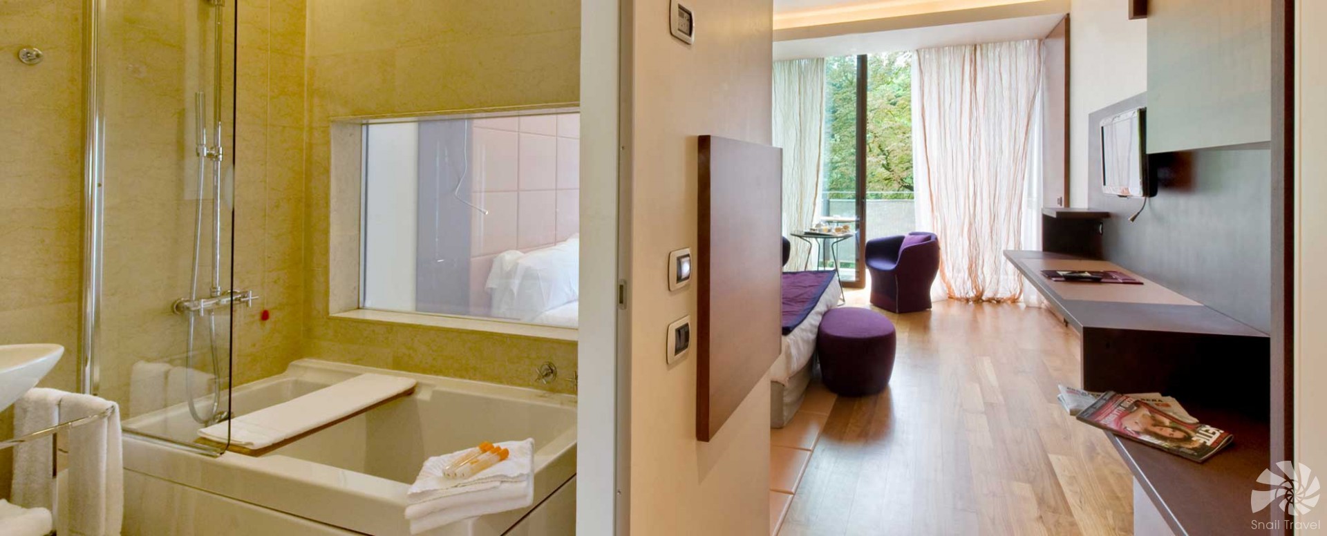 Hotel se nachází ve starém zrekonstruovaném středověkém hradě, okolo kterého je park o rozloze 80 km2. Jeho nespornou výhodou je to, že je obklopen několika nejlepšími hřišti v okolí včetně hotelového hřiště Carimate, které má vchod 50 m od hotelu. Hostům je k dispozici vnitřní bazén, fitness centrum, zdarma parkování v garážích, prádelna a čistírna, Wifi připojení na internet zdarma v celém hotelu, 18 jamkové golfové hřiště Carimate.