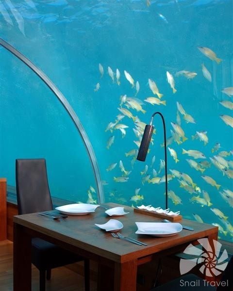 V Conrad Maldives Rangali Island resortu mají hosté možnost vyzkoušet jednu ze 7 restaurací, mezi nimi je i první podvodní restaurace na světě.