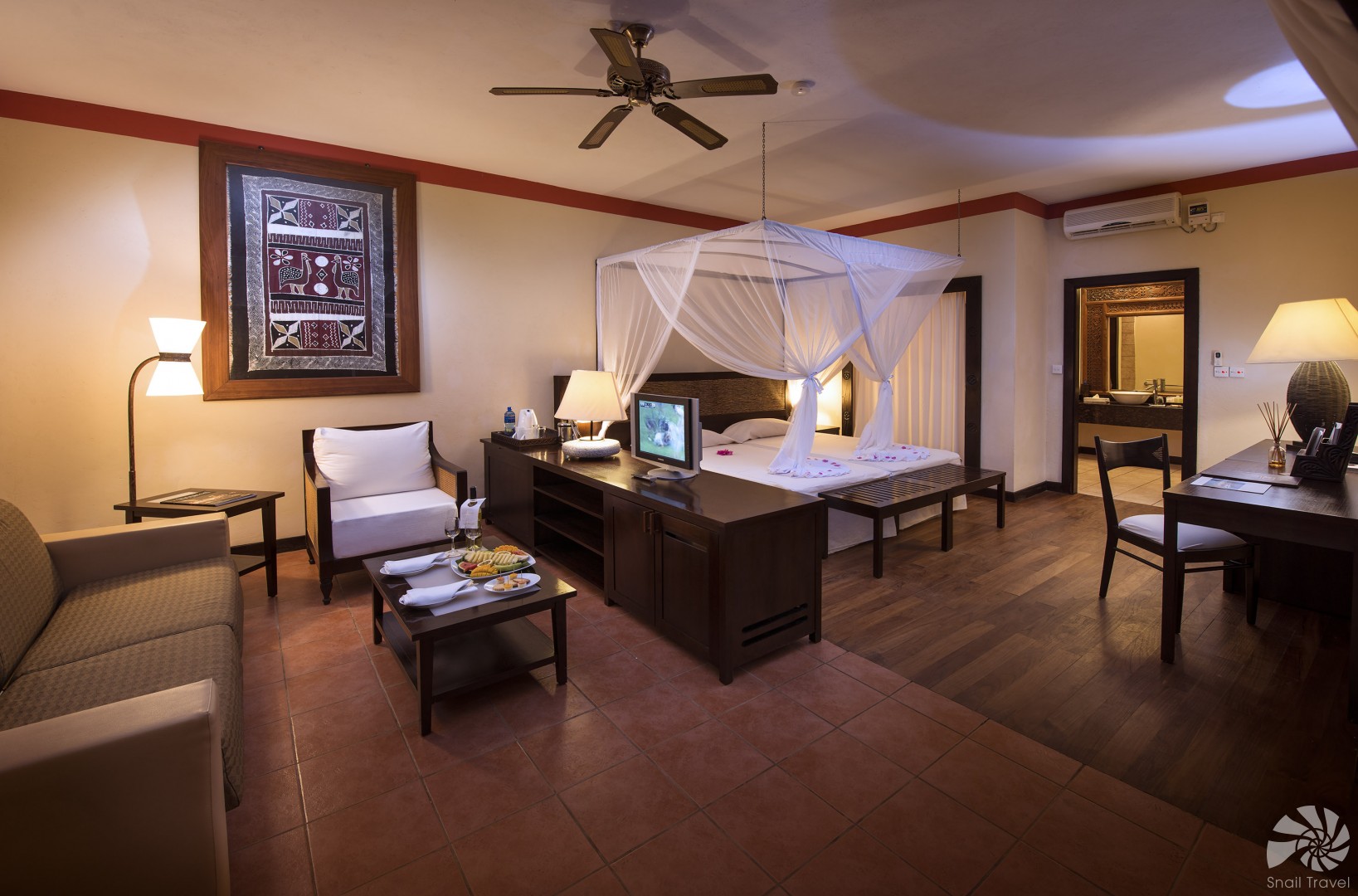 Resort Diamonds Dreams of Africa nabízí celkem 33 junior suite a 2 suite s elegantně zařízenými interiéry s exotickým nádechem. Ubytování nabízí veškeré pohodlí moderního životního stylu. K vybavení všech suit náleží individuálně nastavitelná klimatizace, stropní ventilátor, moskytiéra nad postelemi, WiFi připojení k internetu zdarma, telefon, SAT- TV, minibar (denně zdarma doplňován), vlastní sociální zařízení (koupelna s masážní vanou a sprchou, vysoušeč vlasů, WC), elektronický trezor (zdarma,) terasa.
