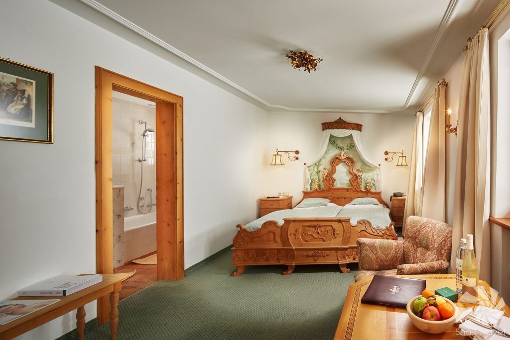 Hotel je složen z 37 pokojů, přičemž k hlavní budově připadá ještě na protější straně ulice dřevěná chata Chalet Säge, vhodná převážně pro rodiny. Všechny pokoje jsou velmi vkusně a luxusně zařízené v tradičním alpském stylu. Každý z hotelových pokojů je jedinečný díky své odlišné přepychové dekoraci. Součástí všech pokojů je minibar, koupelna s vysoušečem vlasů, župany, televizí se satelitním příjmem a vysokorychlostním internetem. Jednolůžkové pokoje – (18 a 25 m²), všechny s koupelnou a WC, vybavené jednoduchými židlemi a konferenčním stolkem. Dvoulůžkové pokoje – (26–34 m²) jsou velmi komfortní s útulným obývacím prostorem, dvoulůžkem, některé z nich mají balkón. Všechny pokoje mají koupelnu a WC. Jäger pokoje – se svými 35 m² jsou zařízeny v klasickém loveckém stylu. Skládají se z ložnice, útulného obývacího prostoru, koupelny a WC. Některé z nich mají kachlová kamna nebo balkón. Apartmány Postillion – tyto prostorné pokoje s 40 m² mají opět velkou ložnici , útulný obývací kout, koupelnu s vanou a WC. Navíc je zde i šatník. Některé z nich disponují bidetem, sprchou nebo parní lázní. Apartmány Postmeister- jejich rozloha činí 50 m². Ložnice a obývací prostor jsou oddělené. Samozřejmostí je buď krb anebo kachlová kamna. Některé z nich disponují bidetem, sprchou nebo parní lázní. Herzog suity – komfortní ubytování na 55 m². Ložnice je oddělená od obývacího prostoru, vždy vybavená buď krbem anebo starodávnými kachlovými kamny. Všechny koupelny jsou vybaveny kromě WC také vanou, sprchou a parní lázní. K dispozici je zde videorekordér. Fürsten suity – na ploše 60–80 m², která je opět rozdělená mezi ložnici a obývací pokoj. K dispozici je opět videorekordér. Některé z nich mají svou vlastní terasu, některé krb nebo kachlová kamna. Součástí koupelny je opět vana, sprcha, parní lázeň, WC. Chalet Säge – se skládá z jedné Fürsten suity, jejíž součástí je kromě ložnice a obývacího koutu taky kuchyňka a komfortní koupelna a samostatné WC a dvoulůžkového Jäger pokoje. Ten se skládá z oddělené ložnice a obývací místnosti, speciální koupelny s parní lázní, vanou a WC. Specialitou Fürsten suity je dřevěné podkroví nazývané též „Heidi“, do kterého se dostáváme pomocí dřeveného žebříku, kam mohou být přidány až 4 přistýlky. Tato útulná chata může využívat veškerých hotelových služeb.
