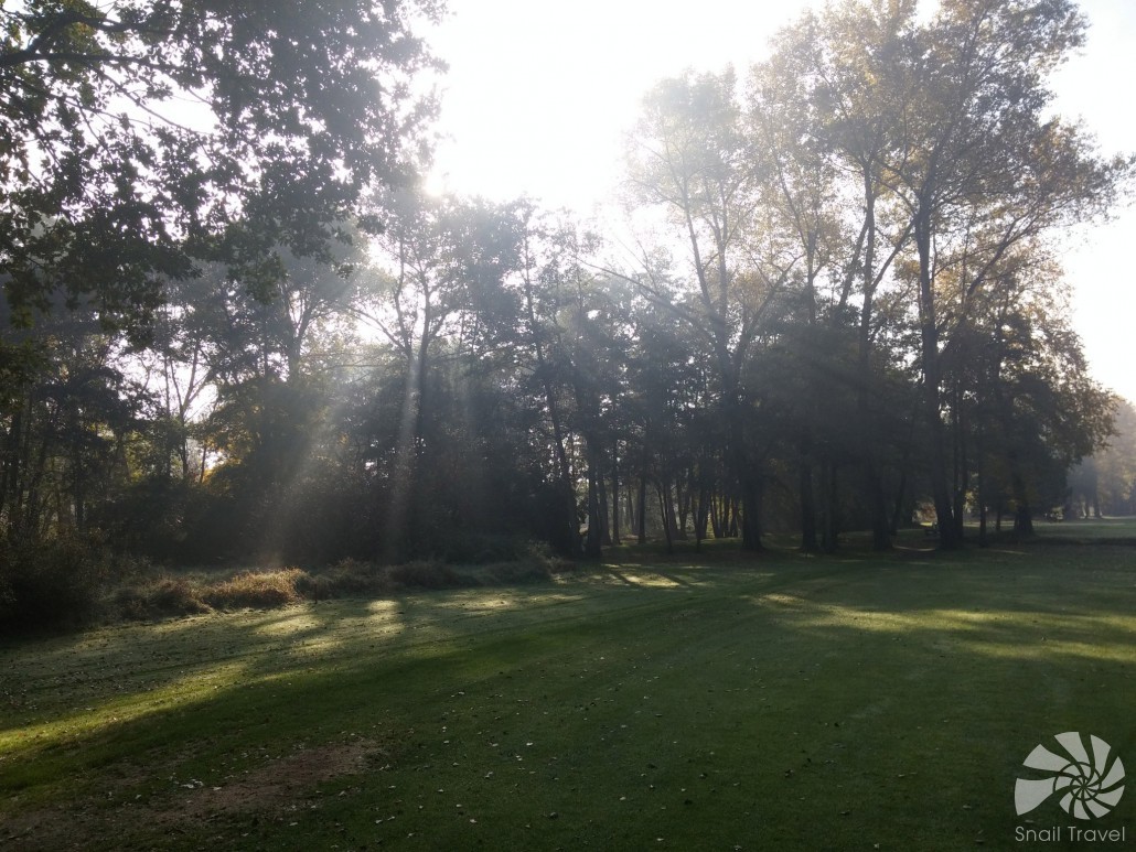Už hned jamka č. 2, čtyřpar zahýbající prudce doprava, se hraje na grýn přes vodu. Čtvrtá jamka (pětipar) má potok přímo před grýnem, stejně tak následující čtyřpar č. 5, kde je malý potok; obě jamky patří díky aleji vysokých stromů k nejhezčím na hřišti. Esteticky působivé, ale hráčsky ne vždy uctívané jsou i dvě lesní jamky, č. 12 a č. 13, kde se hraje jen v obklopení stromů. Zvláště druhá z nich, čtyřpar s délkou 355 m (301 z červených) patří k nejtěžším, první rána je obrovskou výzvou a bogy zde není vůbec špatný výsledek. Jakmile hráč vyjde z lesa, čeká ho další zkouška, 359 metrů čtyřparu č. 14 (z červených 333), kdy se fervej ke grýnu mezi rybníkem a stromy zužuje. Hřiště nedá hráči oddechnout ani na poslední jamce - poprvé na hřišti se před ním otevře široký prostor bez stromů, ale délka čtyřparu 408 metrů (385 z červených) hovoří za vše. Poděbradské hřiště odmění ty hráče, kteří hrají s rozumem, takticky, jamky si pečlivě promyslí. Je ale zážitkem pro každého, díky svému jedinečnému prostředí.