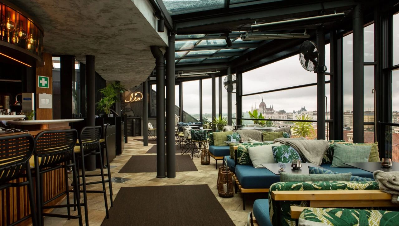 O patro výš se nachází ikonický Leo Rooftop Bar – jeden z nejvyhlášenějších střešních barů v Budapešti. Nabízí dechberoucí panoramatický výhled na Dunaj, mosty, Královský palác i kopuli parlamentu. Stylové prostředí, výběrové koktejly, kreativní kuchyně a západy slunce nad městem vytvářejí atmosféru, kterou si hosté pamatují ještě dlouho po návratu domů.