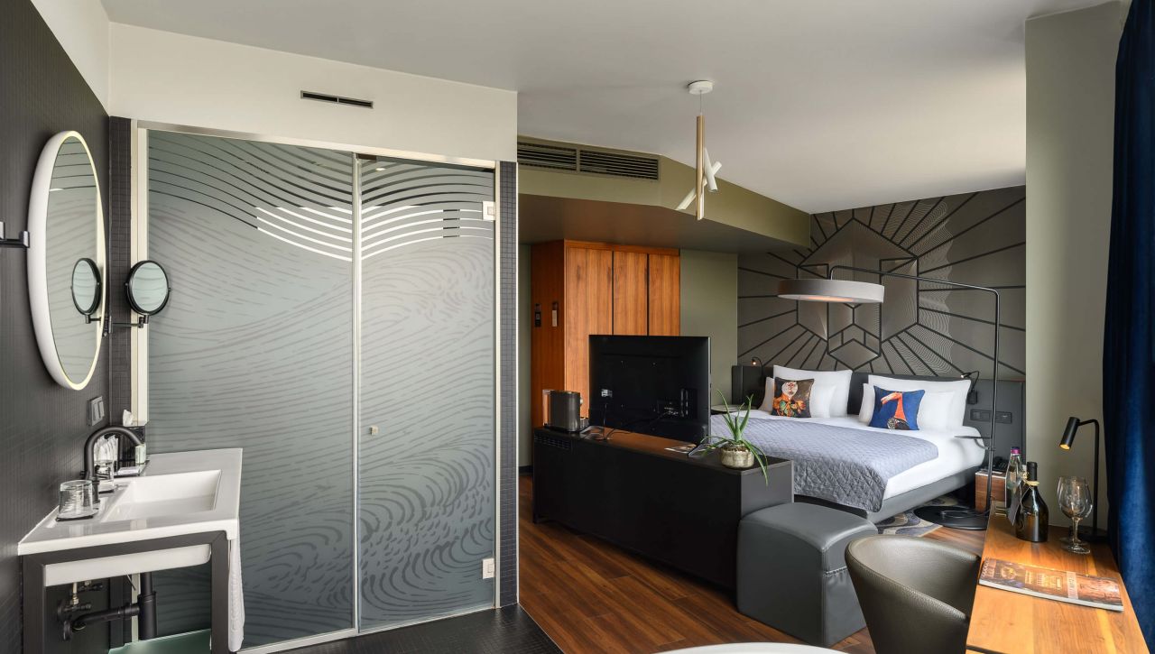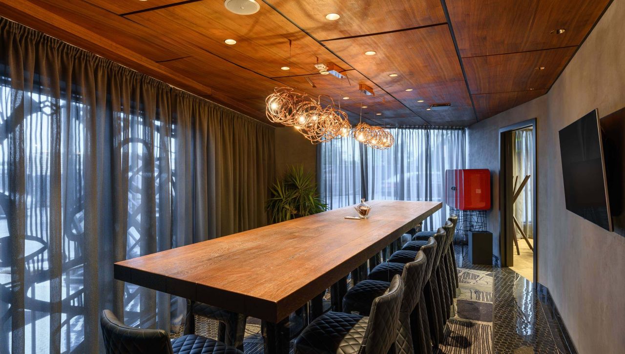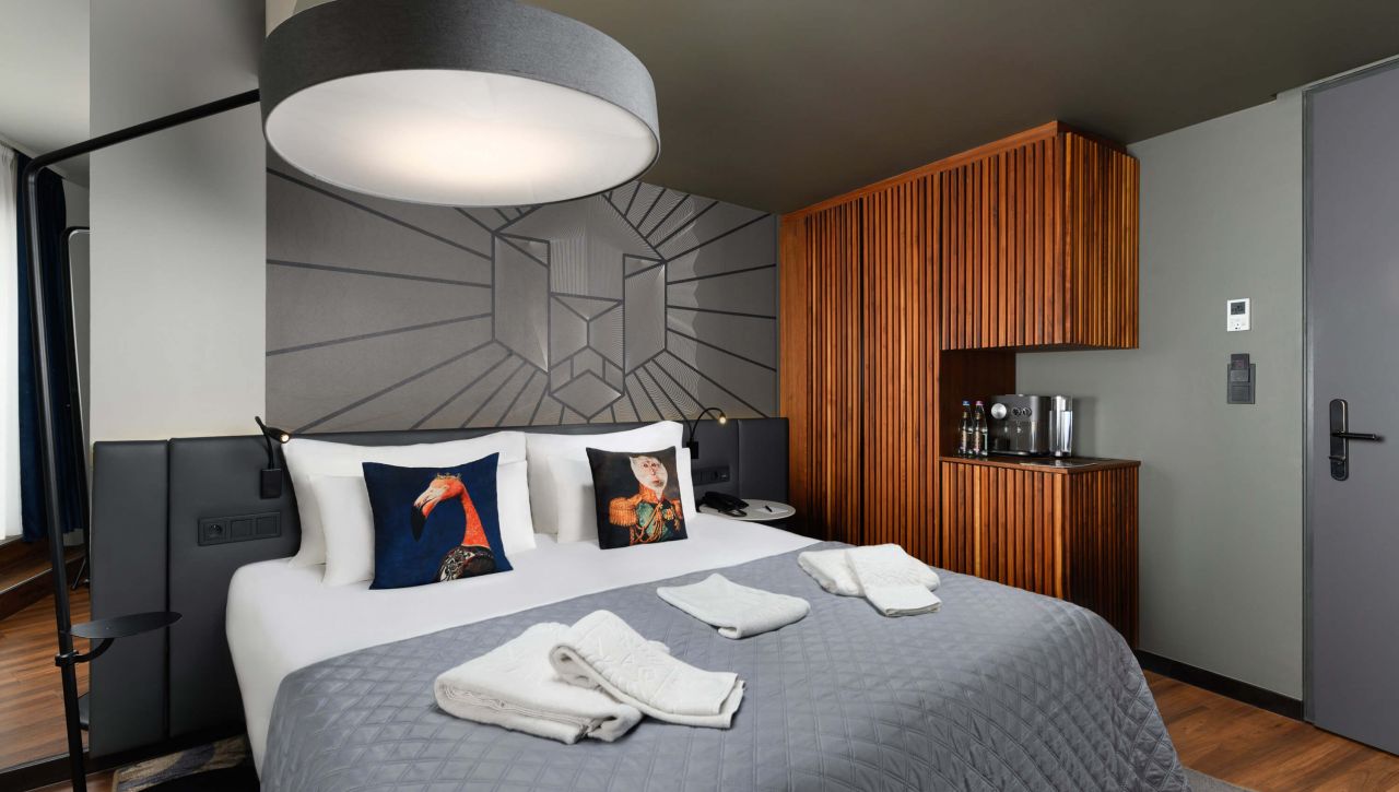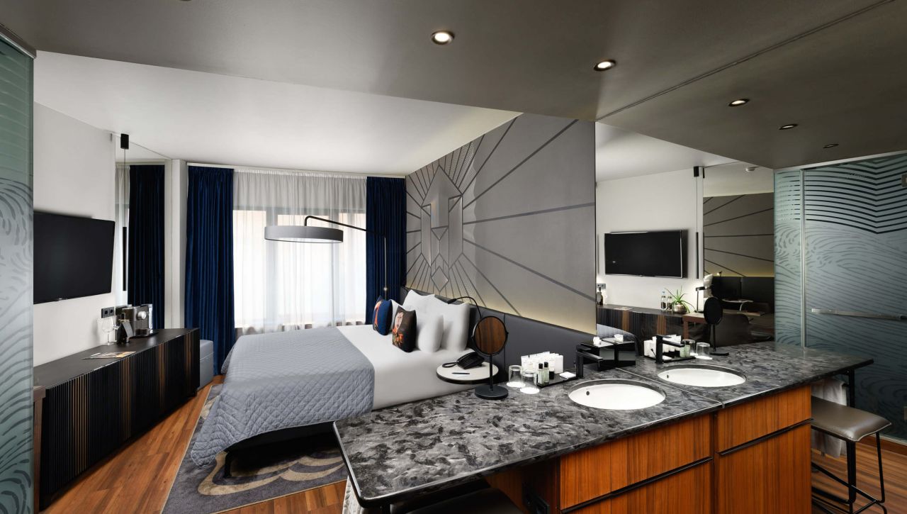 Interiéry hotelu jsou dílem maďarských i mezinárodních designérů, kteří spojili industriální prvky s noblesou městské architektury. Elegantní kombinace dřeva, kovu a tmavých tónů vytváří atmosféru intimity a sofistikovanosti.