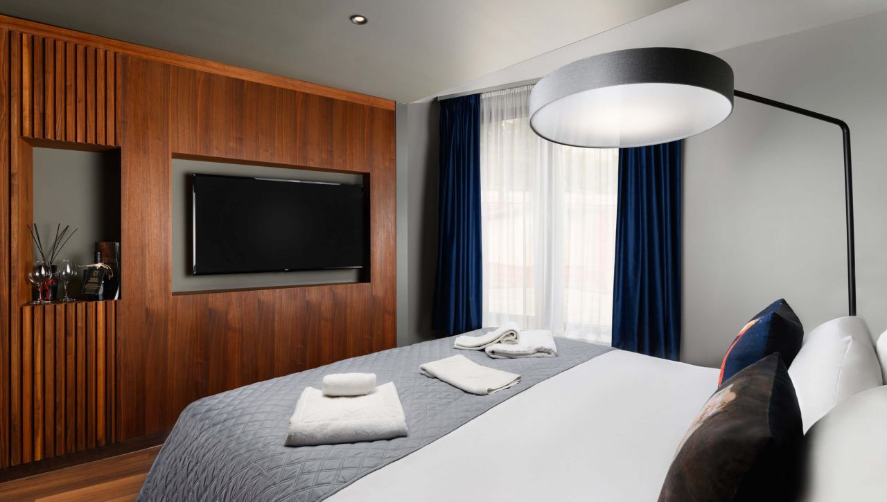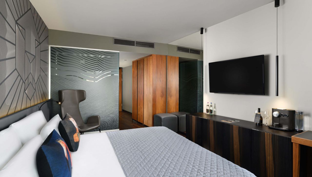 Každý z 79 pokojů nabízí jedinečný výhled – buď na majestátní Dunaj, nebo na tiché uličky podhradí. Moderní vybavení zahrnuje postele s matracemi nejvyšší kvality, luxusní koupelny s dešťovou sprchou, chytrý ovládací systém, kávovar Nespresso a designové detaily, které podtrhují pocit exkluzivity.