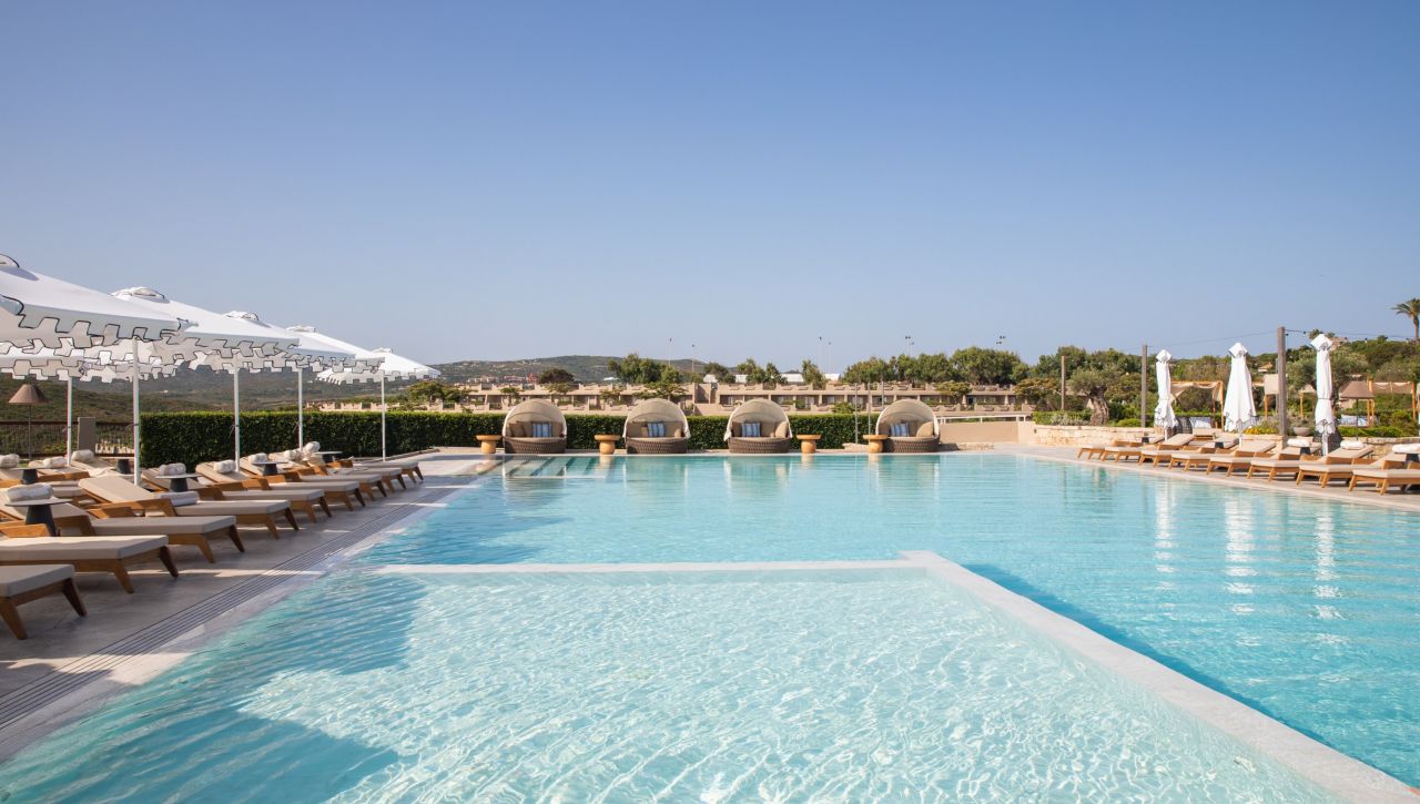 Celý areál je rozprostřen v přírodní krajině a působí velmi vzdušně a nenuceně. Nízké budovy, středomořská zeleň a otevřené výhledy vytvářejí atmosféru, která není typicky „resortová“, ale spíše přirozená a uvolněná. Je to místo, kde máte pocit prostoru a kde se tempo dne přirozeně zpomaluje.
