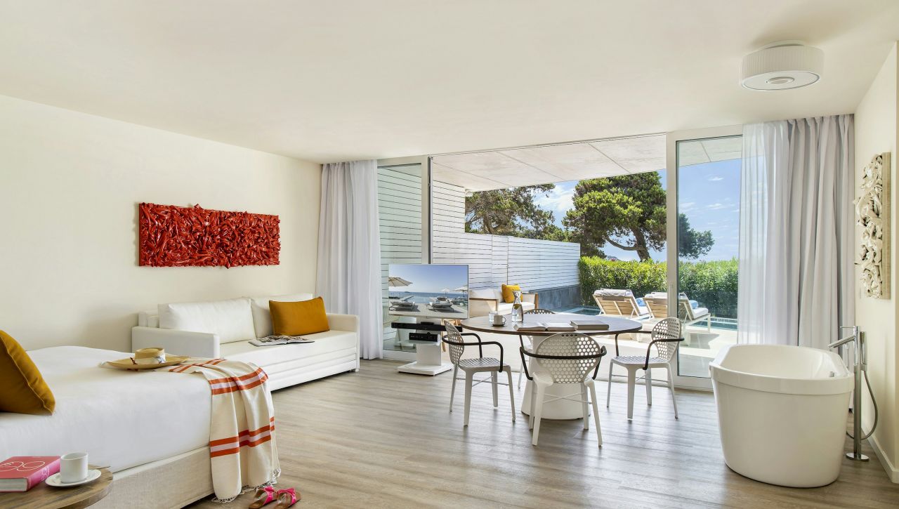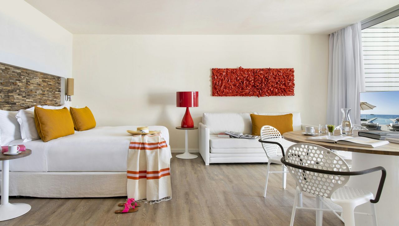 Hotel nabízí širokou škálu pokojů a suit, které jsou navrženy s důrazem na komfort, estetiku a funkčnost. Interiéry jsou moderní, světlé a velmi čisté, s jemnými designovými prvky, které nepůsobí rušivě. Velkým benefitem jsou balkony nebo terasy, často s výhledem na moře, které výrazně zvyšují kvalitu pobytu. Vyšší kategorie suit pak nabízejí více prostoru, privátní zóny a někdy i přístup k exkluzivním službám, což ocení náročnější klientela.