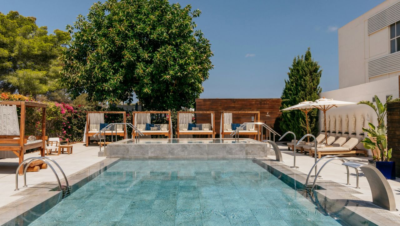 Hotel má přístup k menší pláži, která je ideální pro klidnější koupání. Zároveň spolupracuje s beach cluby v okolí, což hostům umožňuje zažít typický Ibiza lifestyle – od relaxace až po živější atmosféru u moře. Kombinace bazénu, pláže a beach clubů dává velkou variabilitu během dne.