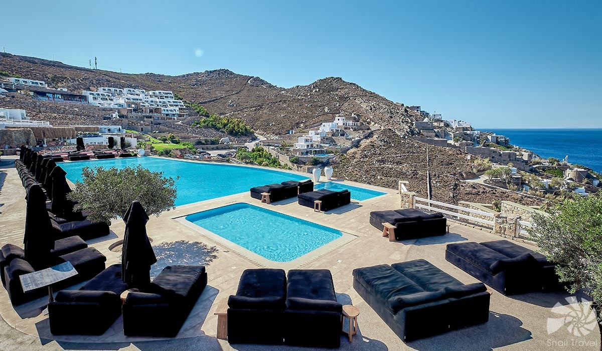 Myconian Villa Collection se nachází vysoko nad pláží Elia, jednou z nejdelších pláží ostrova na jižním pobřeží, pouhých 10 km od města Mykonos. Elia je proslulá svými akvamarínovými vodami, jemným pískem a volnočasovými aktivitami a je samostatným cílem, místem, kde ožívají starověké mýty a moderní legendy pod egejským sluncem a hvězdnou noční oblohou. Bezplatná kyvadlová doprava je k dispozici pro hosty Myconian Collection do a z města téměř každou hodinu. Z městského přístavu odjíždějí trajekty na slavné ruiny Delosu, jednoho z nejdůležitějších mytologických a archeologických nalezišť ve Středomoří. Alternativně se můžete rozhodnout prozkoumat Delos, sousední pustý ostrov Rhenia nebo skryté zátoky Mykonosu soukromým vypuštěním.