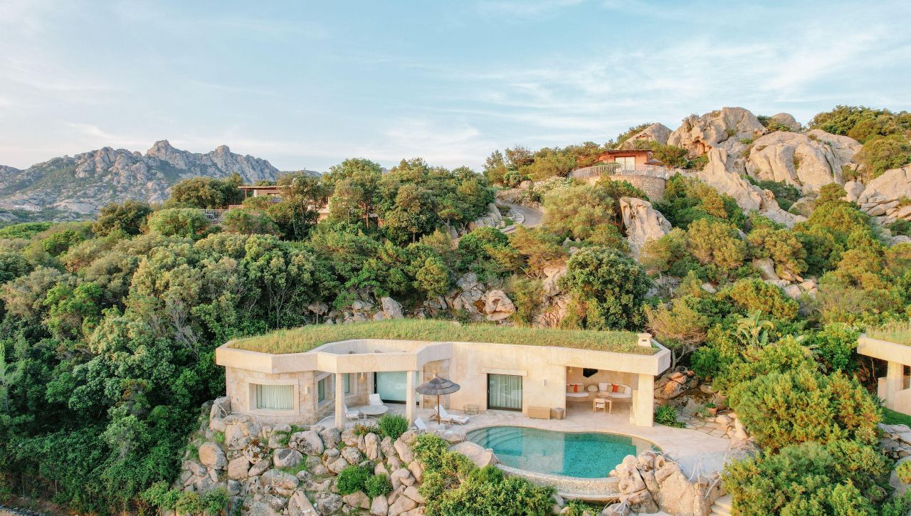 Hotel nabízí ubytování v elegantních pokojích, prostorných suitách i luxusních vilách, které poskytují nejvyšší úroveň soukromí. Interiéry jsou zařízeny v tradičním sardinském stylu s důrazem na přírodní materiály, světlo a pohodlí. Vily s vlastním bazénem a výhledem na moře představují absolutní vrchol nabídky a jsou ideální pro náročné klienty, kteří chtějí mít svůj vlastní prostor bez kompromisů.