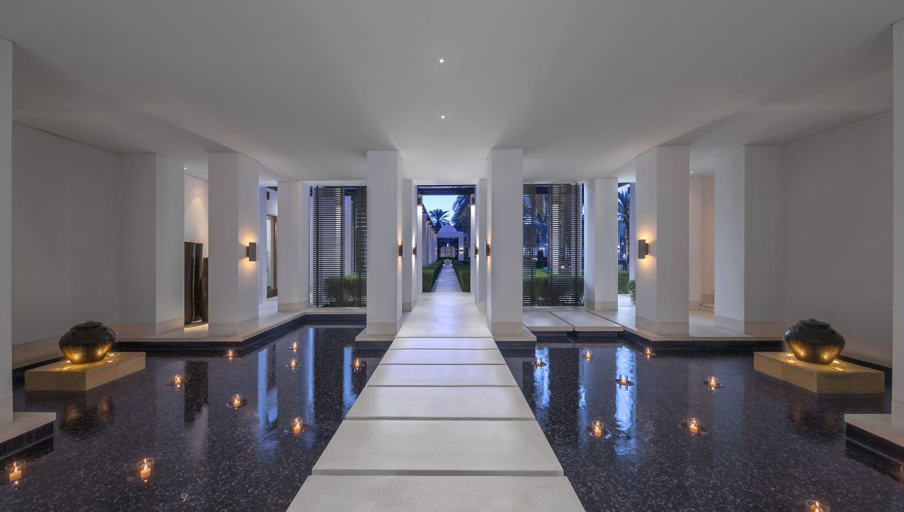 Spa v The Chedi Muscat patří mezi nejvýznamnější wellness centra v Ománu. Nabízí holistické rituály, orientální masáže, ayurvédské procedury, aromaterapii, detoxikační kúry, kosmetickou péči i terapeutické programy. Součástí jsou soukromé spa suity, relaxační pavilony, sauna, parní lázně a moderní fitness centrum. Tiché prostory, vůně esenciálních olejů a světlo pronikající přes geometrické dekorace vytvářejí prostředí, které podporuje hluboké uvolnění.