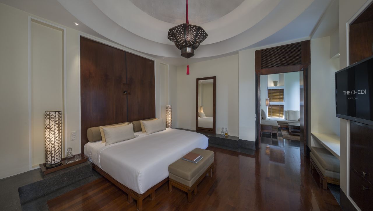 Suity vyšších kategorií poskytují ještě větší prostor a exkluzivní atmosféru, která odlišuje The Chedi Muscat od běžných pětihvězdičkových resortů – jedná se o estetický zážitek, nikoli jen ubytování.