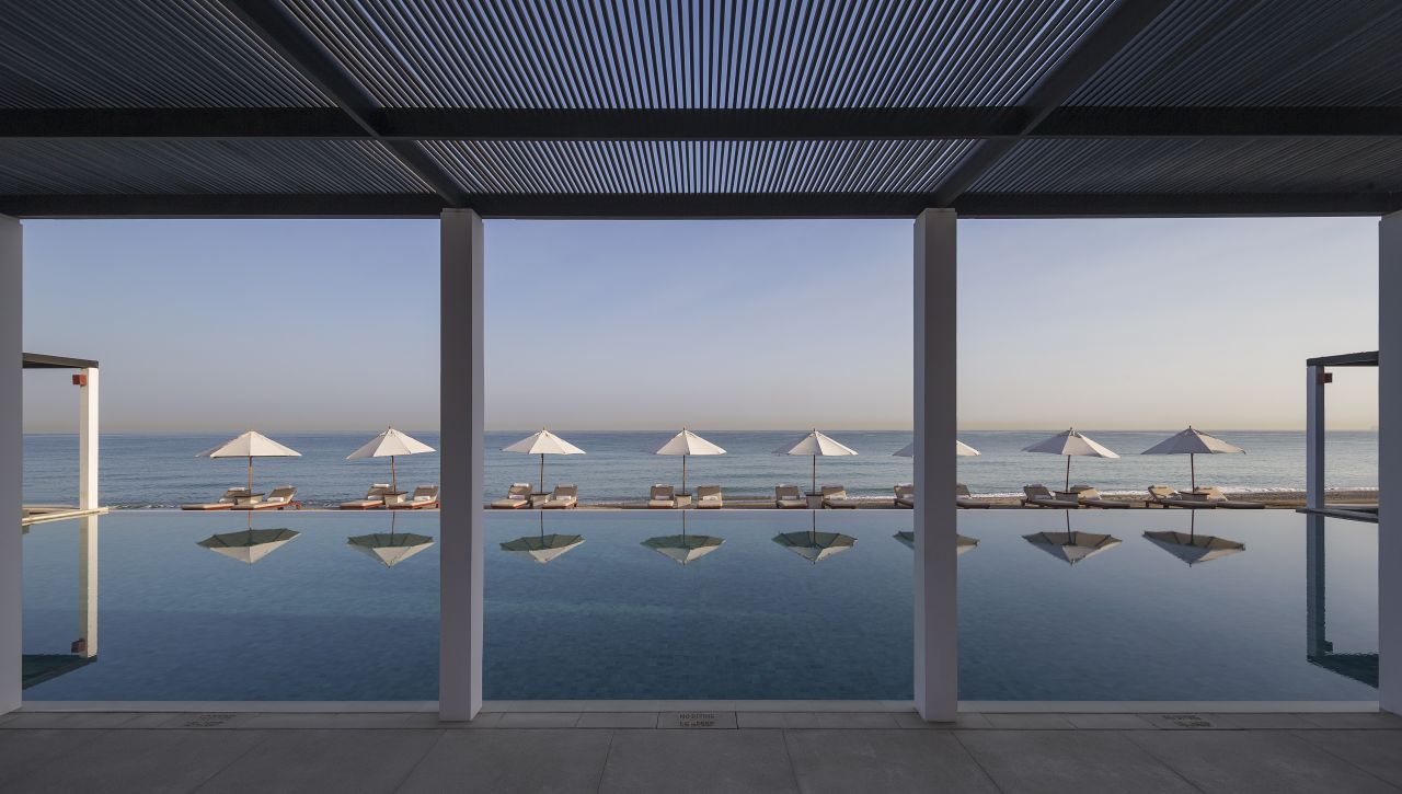 Resort má přímý přístup na dlouhou, širokou pláž s jemným pískem, kde vládne ticho, prostor a uklidňující zvuk mořských vln. Moře je zde klidné, čisté a ideální pro koupání či romantické procházky při západu slunce. Pobřeží působí nedotčeně a elegantně, tak jak se ke Chedi Muscat dokonale hodí.