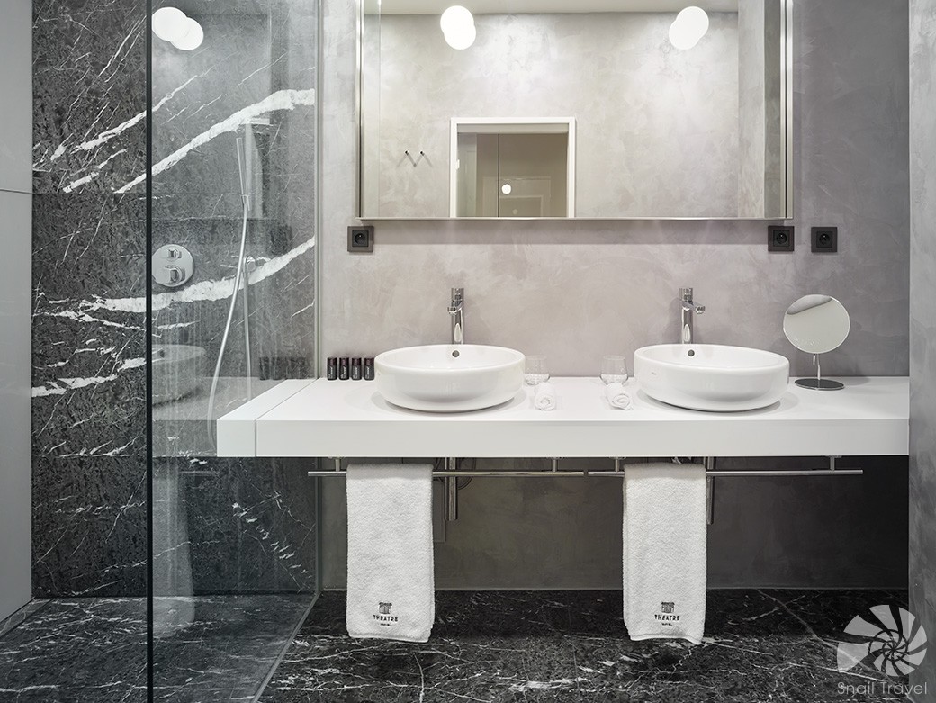 Vybírat si můžete z celkem 16 pokojů STANDARD a 4 apartmá JUNIOR SUITE, kde najdete veškeré pohodlí. Jistě vás potěší vzdušný prostor pokojů o výjimečné rozloze, jednoduchý design, kvalitní materiály i bohaté vybavení. pokoj STANDARD Šestnáct vzdušných pokojů s nadstandardně velkými oddělenými i manželskými postelemi. Samozřejmostí je úprava pro invalidy. Pokoje jsou vkusně zařízené designovým nábytkem a vybavené vším potřebným pro vaše pohodlí. Od prostorné koupelny, přes klimatizaci a wi-fi, až po trezor i minibar. Apartmá Junior Suite Čtyři apartmány v nejvyšším patře hotelu vám dají všechen komfort, který potřebujete. Na 70 m2 si užijete ložnici s obrovskými postelemi oddělenou od salonku, dvě WC a mramorem obloženou koupelnu. Najdete tady vlastní kávovar pro svěží start do nového dne i minibar pro oddech po náročném programu.
