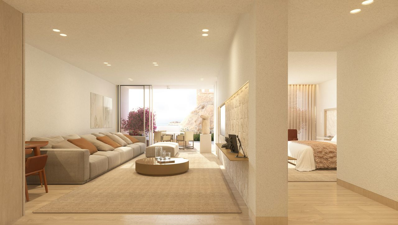 Interiéry jsou moderní, minimalistické a velmi čisté, s důrazem na světlo, prostor a kvalitní materiály. Balkon nebo terasa je přirozenou součástí pobytu a stává se místem, kde hosté tráví velkou část času.